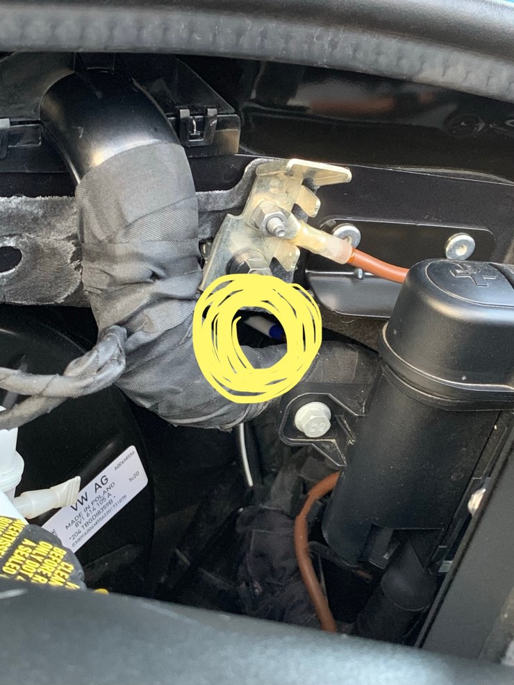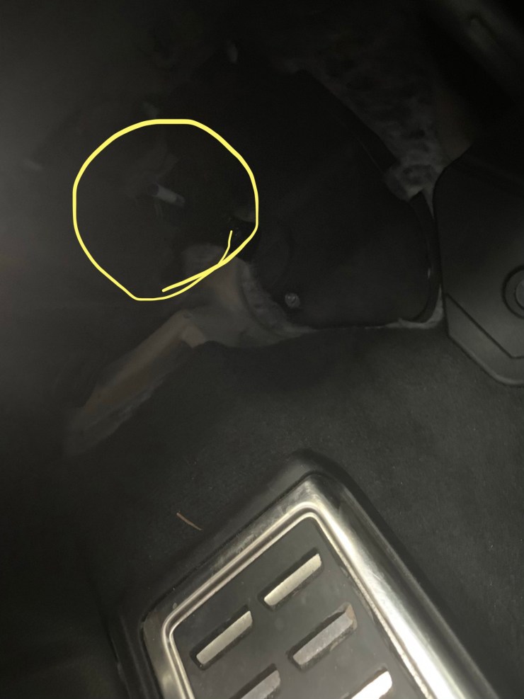 1. On the left side of the car (Drivers side in US), locate the grommet above the dead-pedal where some wires feed through. You’ll need to punch a hole in this to feed the OBDII through the firewall.