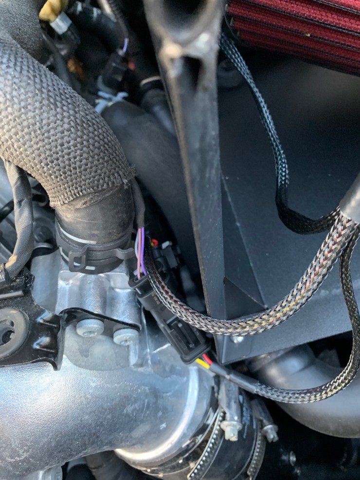 3. Remove the connector nearest your intake filter box, or aftermarket cone filter. Splice in the cable from the JB4 that is PURPLE in color.
